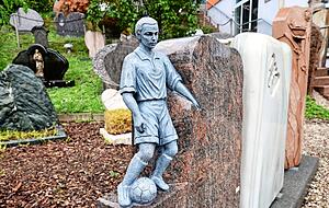 Vor der Werkstatt und hinterm Haus stehen an die 1500 Steine, aus denen die Kunden den passenden aussuchen können. Andere werden auch auf Wunsch gefertigt - wie kürzlich einer aus blauem Stein mit einem Urlaubsmotiv in Airbrush-Technik. "Das mussten wir genehmigen lassen", erzählt Weirether. Denn die Friedhofssatzungen sind teils sehr streng. Farbe, Größe, Gestaltung sind reglementiert. "Aber in dem Fall war es kein Problem."