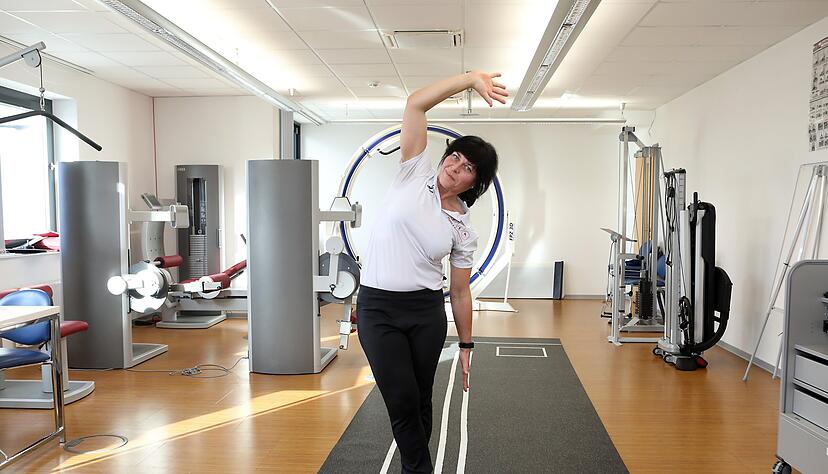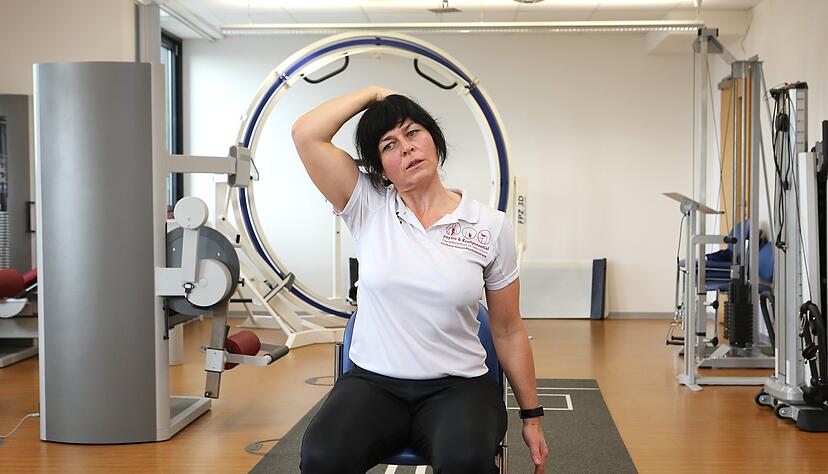 Zum Großteil seien diese Beschwerden muskulär bedingt, weil die Muskulatur ungleich belastet wird oder zu schwach ist. Die Übungen, die sie zeigt, sorgen für Entlastung. So könne Schmerzen in der Muskulatur und den Gelenken vorgebeugt werden. Wichtig sei, die Übungen nur zu machen, wenn sie keine Schmerzen bereiten.