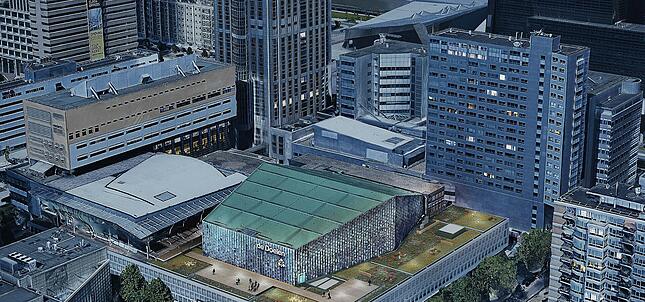 Das Konferenz- und Konzerthaus de Doelen, erbaut 1966, ist ein typisches Gebäude dieser Zeit: gerade Strukturen, viel Beton, kein Grün auf dem 2581 Quadratmeter großen Flachdach. Das wird sich ändern. Unter de Doelen wird ein unterirdischer Wasserspeicher entstehen, das Dach wird zum blau-grünen Dach umgebaut. Wasser wird erst aufgesogen und versickert dann langsam. Wenn es zu heiß wird, kann das gespeicherte Wasser zur Kühlung auf das Dach zurückgepumpt werden. Auch das in de Doelen beheimatete Rotterdam Philharmonic Orchestra will dort oben künftig Konzerte spielen.