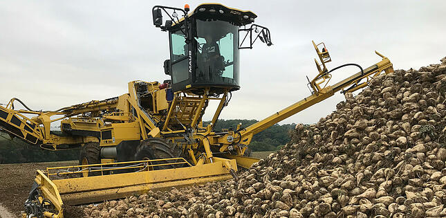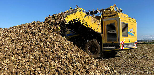 Im Einsatz ist die Maschine ab etwa 10. September bis 20. November. Dann versuchen die Landwirte, die Zuckerrüben aus der Erde zu haben. Die Berge werden dann mit Vlies abgedeckt, bis die Verlademaus kommt und sie holt.