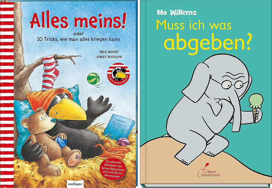 "Alles meins! oder 10 Tricks, wie man alles kriegen kann" von Nele Moost und Annet Rudolph, erschienen im Esslinger Verlag, für Kinder ab sechs Jahren