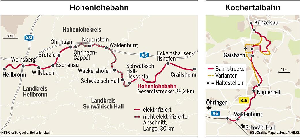 Die Hohenlohebahn müsse jedoch auf jeden Fall "ertüchtigt" werden, "sonst funktioniert der Anschluss der Bus-Shuttle-Linie in Waldenburg nicht". Es genüge, die Strecke bis Waldenburg zu elektrifizieren und auf Stadtbahn-Qualität zu trimmen, der Abschnitt bis Hessental könne mit Batterie- und Hybridantrieben bewältigt werden. Weidmann wirbt für ein "regionales Mobilitätskonzept", das Heilbronn und Schwäbisch Hall mit einschließt.