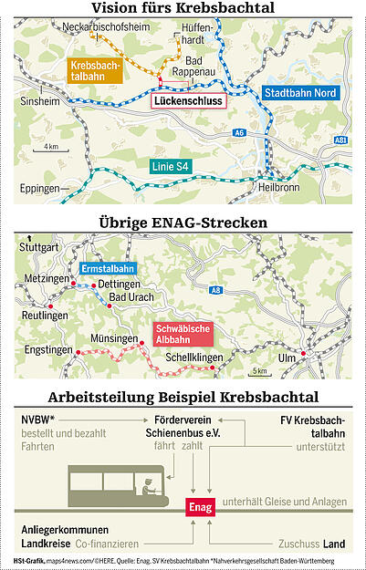 Strähle: Das wäre für uns auf jeden Fall interessant, das weiterzuentwickeln. Das wäre eine tolle Ergänzung zur Krebsbachtalbahn. Ob das Landratsamt uns da auswählen würde, das kann ich nicht beurteilen. Aber zunächst müsste die DB Netz zur Abgabe bereit sein.