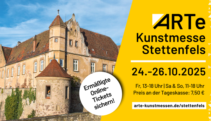 Vom 24. bis 26. Oktober findet in der Burg Stettenfels in Untergruppenbach die ARTe Kunstmesse statt. Erleben Sie Gegenwartskunst auf 1.000 qm auf Burg Stettenfels! Drei Tage lang