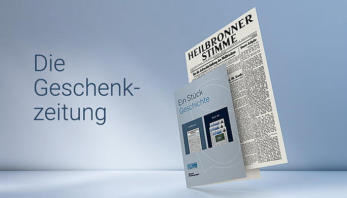 Verschenken Sie das Besondere – eine historische Originalausgabe Ihrer Heilbronner Stimme (1946 bis 11/2001), Hohenloher Zeitung (1947 bis 11/2001) oder Eppinger Zeitung (1972-2001).