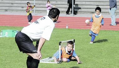 So viele Zuschauer gibt's bei der Fußballschule von Klaus Kaltwasser selten. Drei Dutzend Neugierige kiebitzen auf den Rängen des Kraichgaustadions, ein paar jugendliche Autogrammjäger inklusive.