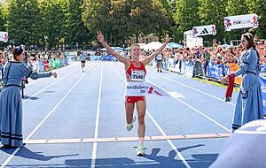 Ganz besonders, wenn die Strecke so profiliert ist. Die deutsche Vizemeisterin von 2018 läuft meist Stadt-Marathons. Auf Zeit. An eine Bestmarke ist beim Trolli aufgrund der Steigungen und der warmen Temperaturen nicht zu denken. Mehr noch: Die von der Sporthilfe Unterland geförderte Athletin läuft viel allein. Ein Beleg sind ihre satten 16 Minuten Vorsprung auf Silvia Felt (laufen.de) und Maria Magdalena Veliscu (Running Frenzy/3:12:43), die als Dritte auf dem Podest steht.