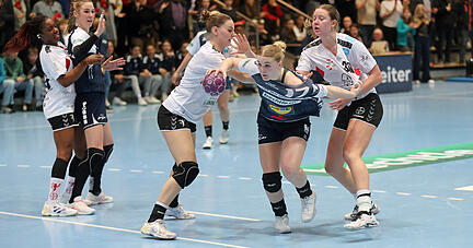 Gudmestad erzielte gleich die ersten vier Treffer der Sport-Union und war in der Abwehr mehrfach eng an Naina Klein dran, die die Gastgeberinnen im Hinspiel in Tübingen mit zehn Toren mächtig frustriert hatte. Nach rund neun Minuten saß Klein bei Hirschs erster Auszeit bereits draußen und die Sport-Union führte mit 6:2.