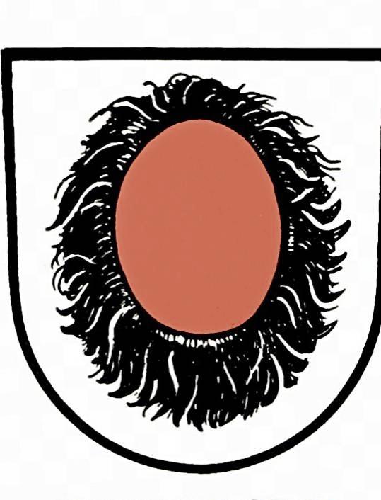 Das erste, von 1482 bis 1611 belegte Dorfsiegel lässt im Schild hinter einem Zaun eine menschliche Gestalt erkennen. Nach farbigen Zeichnungen dieses Wappens, deren älteste von 1535 stammt, stellt dieses Bild einen Priester (Pfaffen) in einem „Hof“ dar. Es handelt sich somit um ein „redendes“ Wappen. Von 1583 an geben Zeichnungen die jetzige, gleichfalls „redende“ Wappenfigur wieder, die – in vereinfachter Form – auch als Marksteinzeichen belegt ist. Nachdem diese Figur in Siegeln des 20. Jahrhunderts infolge eines Missverständnisses zu einer Sonne umgewandelt worden war, kam die Gemeinde 1956 zur Priestertonsur (kahler Schädel mit Haarkranz) zurück. Das Wappen wurde am 13. November 1956 vom Innenministerium bestätigt, die Flagge am 31. Januar 1980 vom Landratsamt verliehen. Die Gemeindefarben sind Rot-Weiß. red