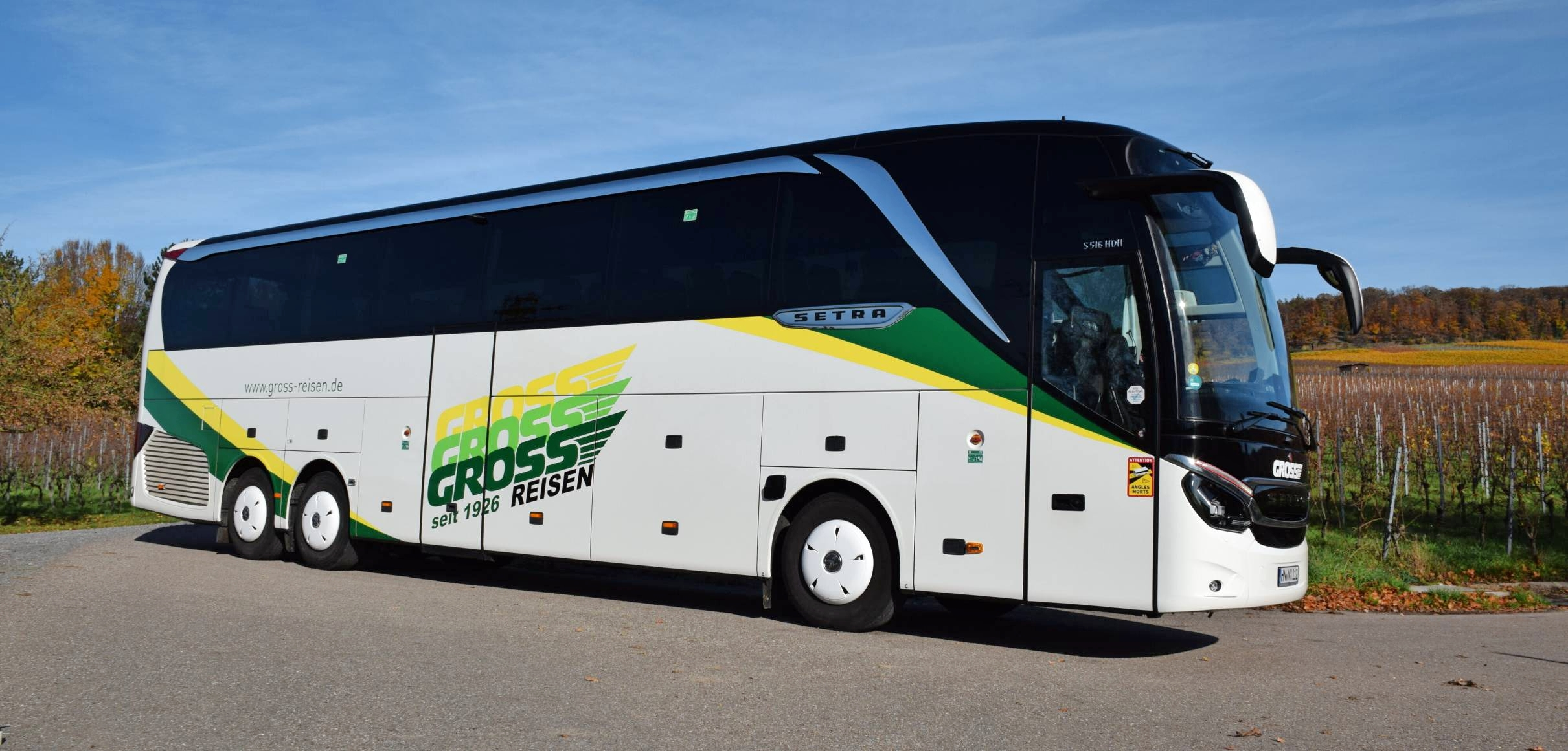 Zum Wohlfühlen trägt auch die moderne Busflotte bei - mit hohem Komfort, verstellbaren Sitzen, großzügigem Sitzabstand und modernen Multimedia-Systemen. Zum Jubiläum hat GROSS in zwei nagelneue Setra-Reisebusse investiert. Sie tragen die Namen Friedrich und Rosine - inliebevoller Erinnerung an das Gründerpaar.