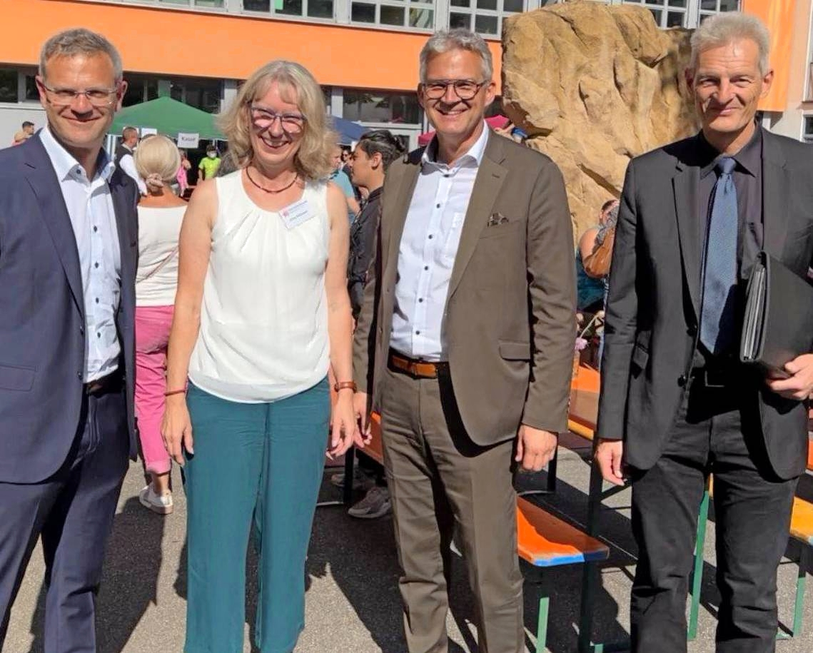 NECKARSULM Die Pestalozzischule, Sonderpädagogisches Bildungs- und Beratungszentrum mit Förderschwerpunkt Lernen, wird jetzt offiziell von Jutta Freimann geleitet. Die bisherige Stellvertreterin von Wolfram Karg hatte bereits im September 2021 die kommissarische Schulleitung übernommen und wurde am 9. Februar 2022 zur Schulleiterin bestellt. Die feierliche Amtseinsetzung fand jetzt beim Schulfest „Pestalozzi Jahrmarkt“ statt. Schulamtsdirektor Markus Wenz und Oberbürgermeister Steffen Hertwig setzten Jutta Freimann offiziell in ihr Amt ein.