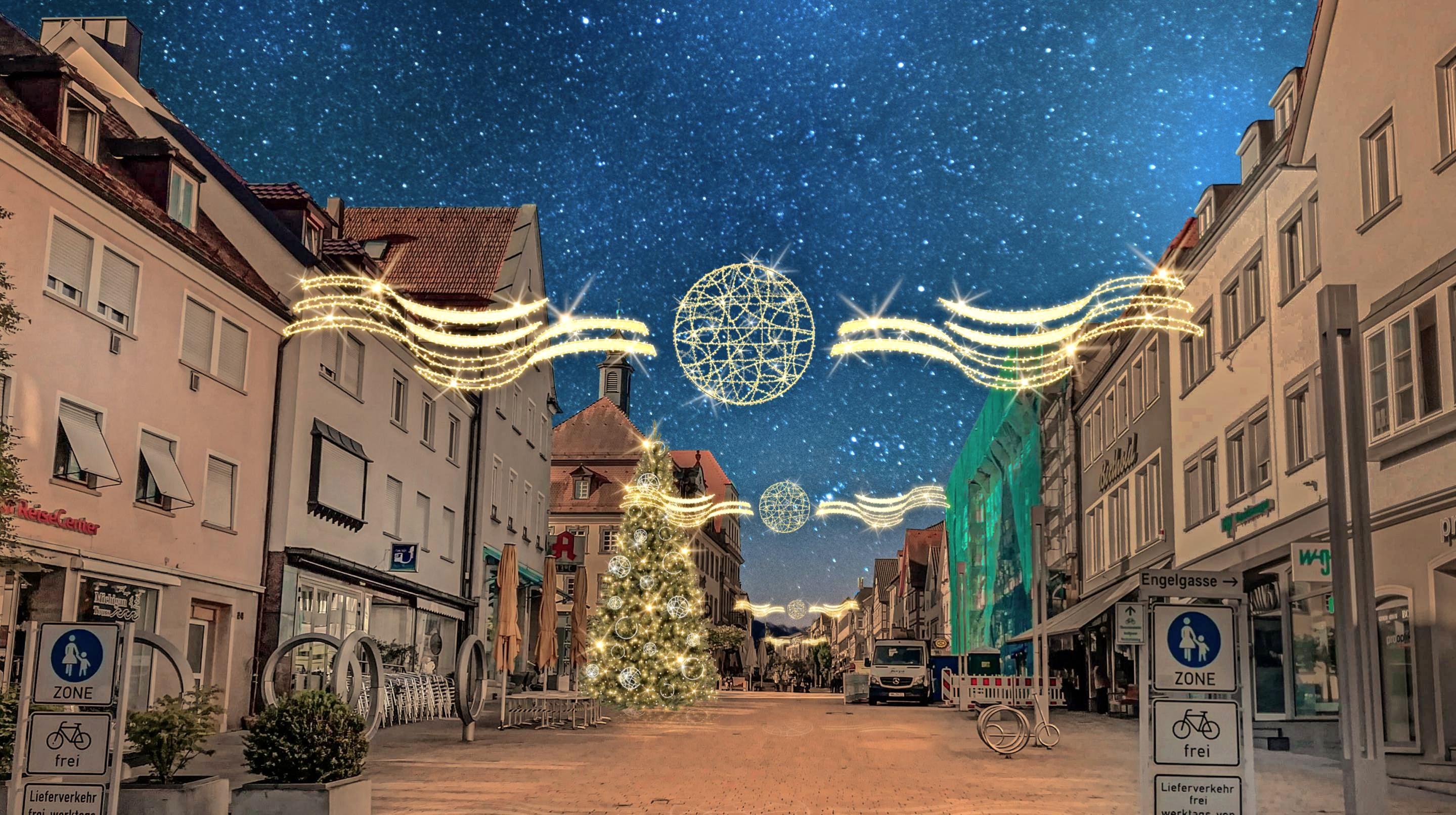Die Bauhofmitarbeiter haben bereits sämtliche Leuchtelemente in aufwendiger Handarbeit installiert. Dazu mussten eigens die Befestigungen an den Häuserfassaden geprüft und teils erneuert werden. Citymanager Daniel Bürkle dankt den Bauhof-Teams für die tolle Arbeit: „Dank des Bauhofeinsatzes können wir die neue Weihnachtsbeleuchtung pünktlich zum Adventsbeginn einschalten. Zugleich starten wir so auch stimmungsvoll in das Jubiläumsjahr 2021.“