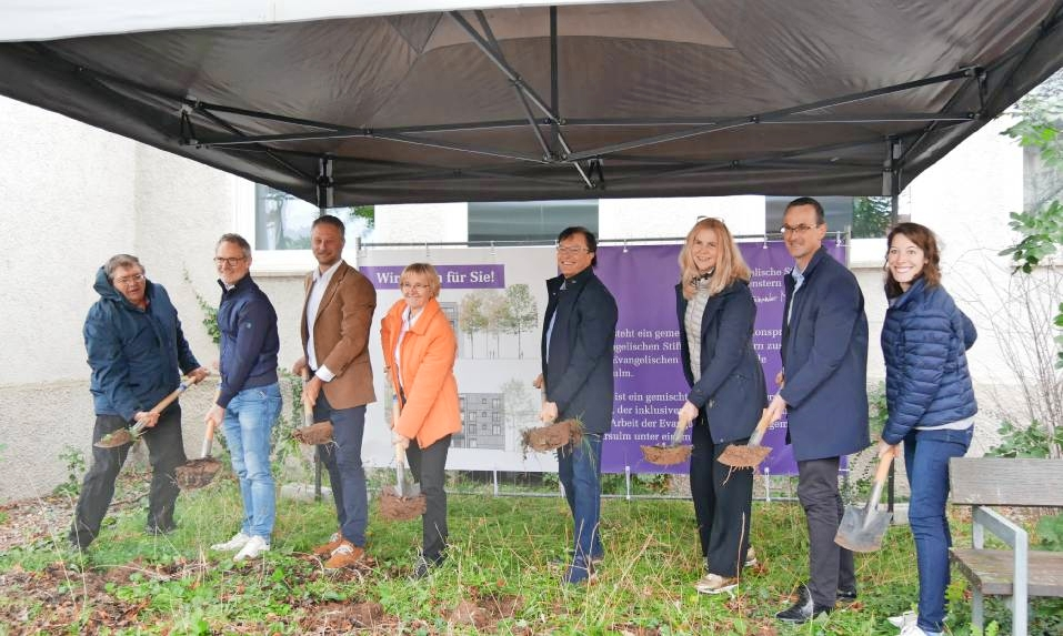 Ein neues Angebot in besonderer Wohnform für Menschen mit Handicap schließt eine Versorgungslücke in Neckarsulm, setzt neue Maßstäbe bei der Inklusion und stärkt die soziale Infrastruktur in der Großen Kreisstadt. Am früheren Standort des evangelischen Gemeindehauses in der Friedrichstraße 49 entsteht ein gemischt genutzter, barrierefreier Neubau, der inklusiven Wohnraum und Räume für die Arbeit der Evangelischen Stadtkirchengemeinde unter einem Dach vereint. Mit dem ersten Spatenstich erfolgte jetzt der Baustart.