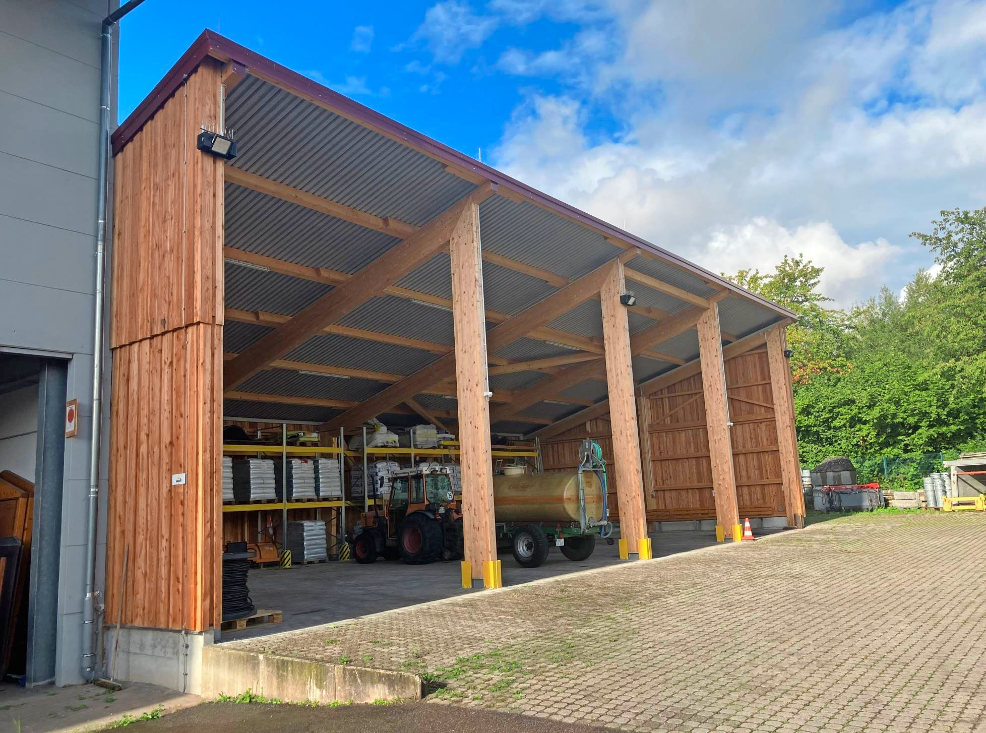 Errichtet wurde das 20 mal 10 Meter große offene Gebäude in Holzbauweise mit einem Trapezdach.